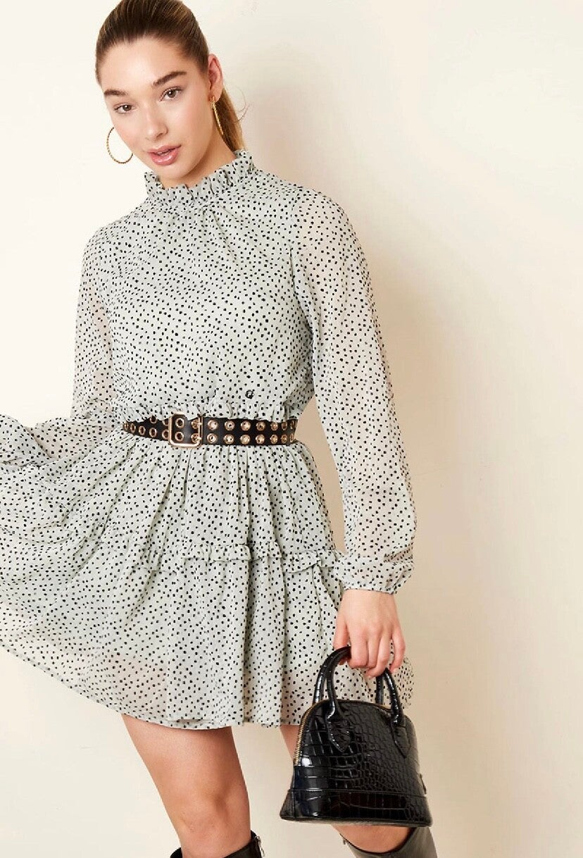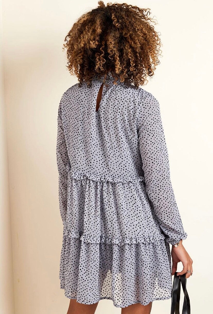 Trendige, sehr schönes und verspieltes Kleid mit Punkten und Rüschen um den Hals
