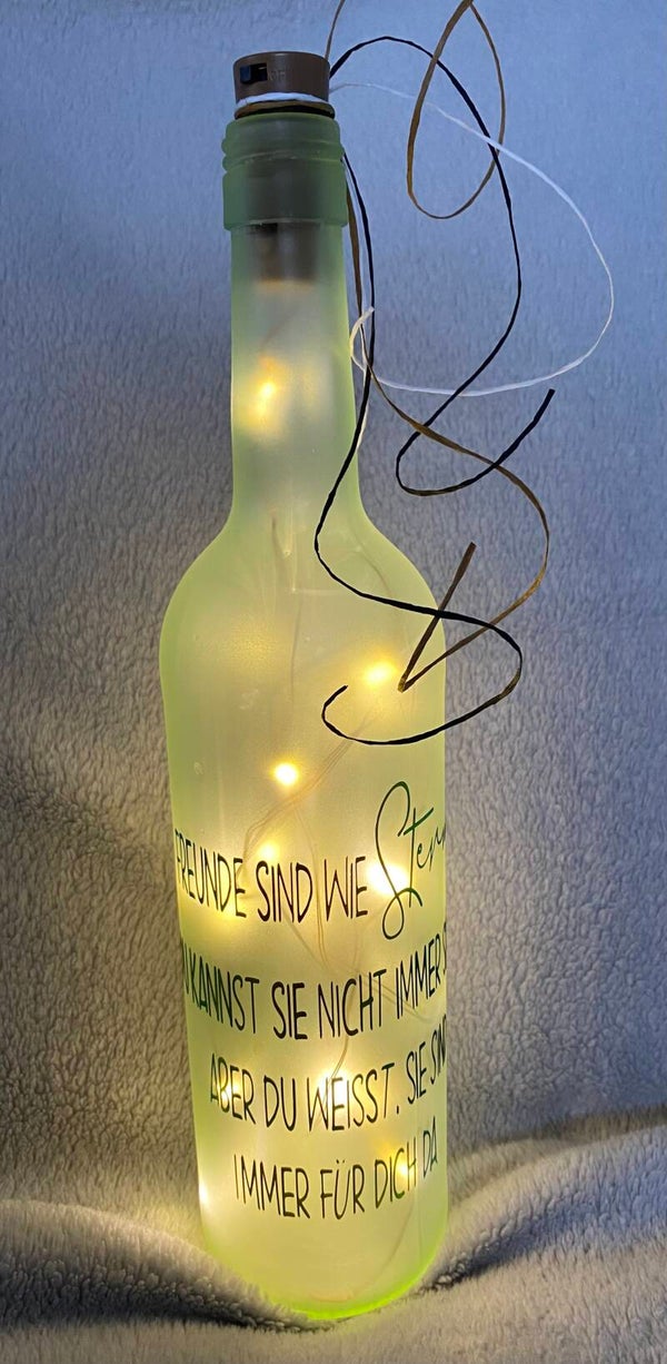 Beleuchtete recycelte Flasche „Freunde sind….“